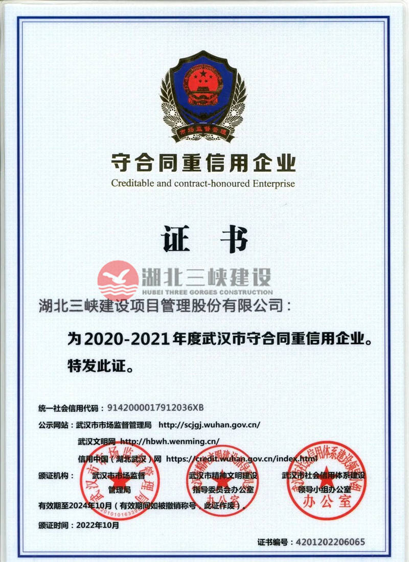 | 2020-2021年度武漢市守合同重信用企業(yè) |