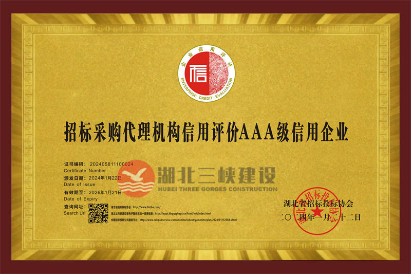 招標(biāo)采購代理機(jī)構(gòu)信用評價AAA級信用企業(yè)