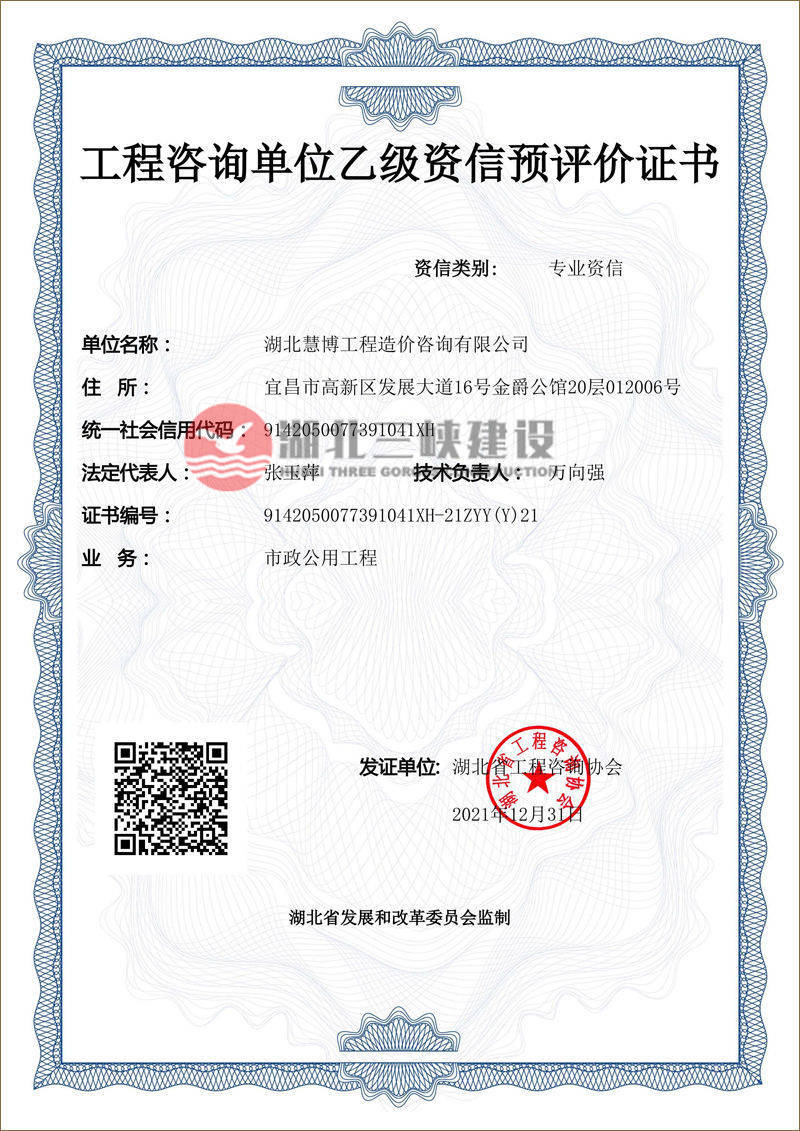 | 工程咨詢(xún)單位乙級(jí)資信預(yù)評(píng)價(jià)證書(shū) |