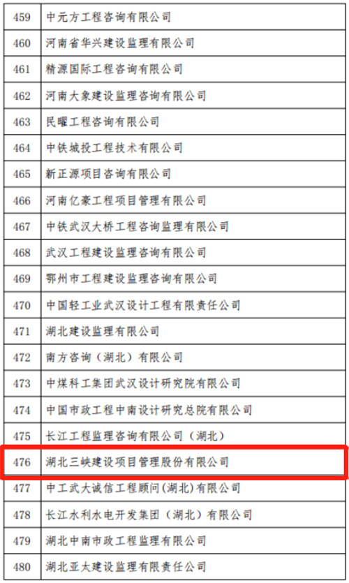 2024年9月30日,在中國建設監(jiān)理協(xié)會公布的2022-2023年度單位會員信用評價結果中,湖北三峽建設項目管理股份有限公司被評為AAA級中國工程監(jiān)理信用企業(yè)。