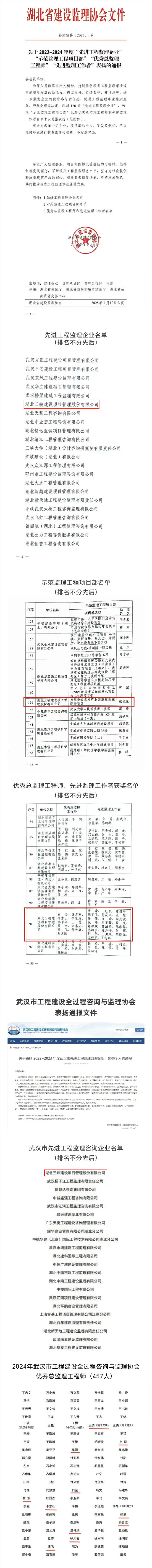 近日,在湖北省建設(shè)監(jiān)理協(xié)會(huì)發(fā)布的2023-2024年度省級(jí)“先進(jìn)工程監(jiān)理企業(yè)”、“示范監(jiān)理工程項(xiàng)目部”、“優(yōu)秀總監(jiān)理工程師”、“先進(jìn)監(jiān)理工作者”和武漢市工程建設(shè)全過程咨詢與監(jiān)理協(xié)會(huì)發(fā)布的2022-2023年度武漢市“先進(jìn)工程監(jiān)理咨詢企業(yè)”、“優(yōu)秀個(gè)人”的評(píng)選結(jié)果公告中,湖北三峽建設(shè)項(xiàng)目管理股份有限公司再獲殊榮。 此次評(píng)選結(jié)果,湖北三峽建設(shè)項(xiàng)目管理股份有限公司榮獲2023-2024年度省級(jí)“先進(jìn)工程監(jiān)理企業(yè)”、2022-2023年度武漢市“先進(jìn)工程監(jiān)理咨詢企業(yè)”榮譽(yù)稱號(hào);點(diǎn)軍橋邊農(nóng)卉產(chǎn)業(yè)園基礎(chǔ)設(shè)施配套項(xiàng)目監(jiān)理部榮獲“省級(jí)示范監(jiān)理工程項(xiàng)目部”榮譽(yù)稱號(hào);謝忠安、秦晉江、白全、李東山、李世紅、王勇、吳剛、熊飛、徐天喜、趙志剛榮獲“省級(jí)優(yōu)秀總監(jiān)理工程師”榮譽(yù)稱號(hào);白全、杜波、熊飛、徐天喜、夏忠斌、秦晉江、張瑜、李東山、文瑞、王勇、吳剛榮獲“武漢市優(yōu)秀總監(jiān)理工程師”榮譽(yù)稱號(hào);鮑宇飛、陳恭銘、陳俊平、陳澤峰、董亮、都啟斌、范曉光、黃清橋、荊凱、李興波、倪瑋、孫嶺洲、汪慧、王旺民、王勇政、王志鵬、文瑞、肖王鋒、張輝、張偉、張瑜、左開亮榮獲“先進(jìn)監(jiān)理工作者”榮譽(yù)稱號(hào)。