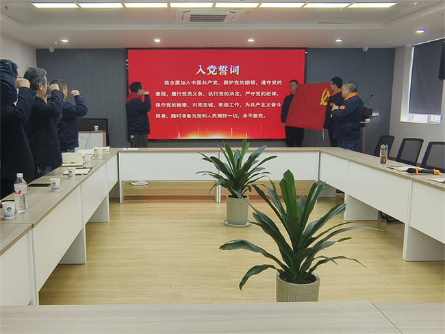 學(xué)習(xí)結(jié)束后,舉行了新發(fā)展預(yù)備黨員陳恭銘同志的入黨宣誓儀式。黃崇明同志宣讀了上級黨委的審批意見,支部組織委員張玉萍同志為陳恭銘同志佩戴了黨徽,全體黨員在支部書記盛斌同志的領(lǐng)讀下,面向鮮紅黨旗莊嚴(yán)宣誓,再次重溫了入黨誓詞。預(yù)備黨員陳恭銘同志表示要牢記入黨誓詞,不斷提高黨性覺悟和業(yè)務(wù)水平,以更加飽滿的熱情、更加昂揚(yáng)的斗志,爭取在公司轉(zhuǎn)型發(fā)展中取得更大成績。