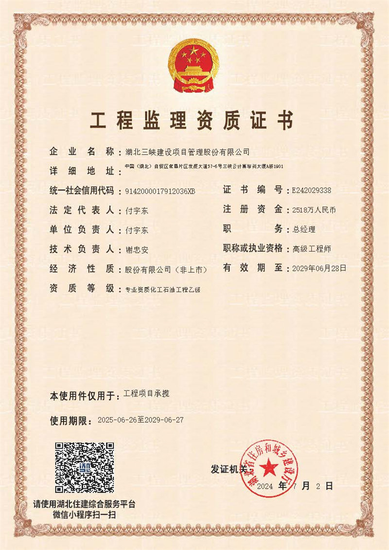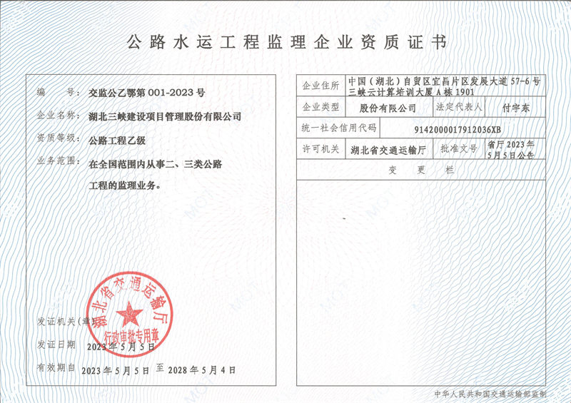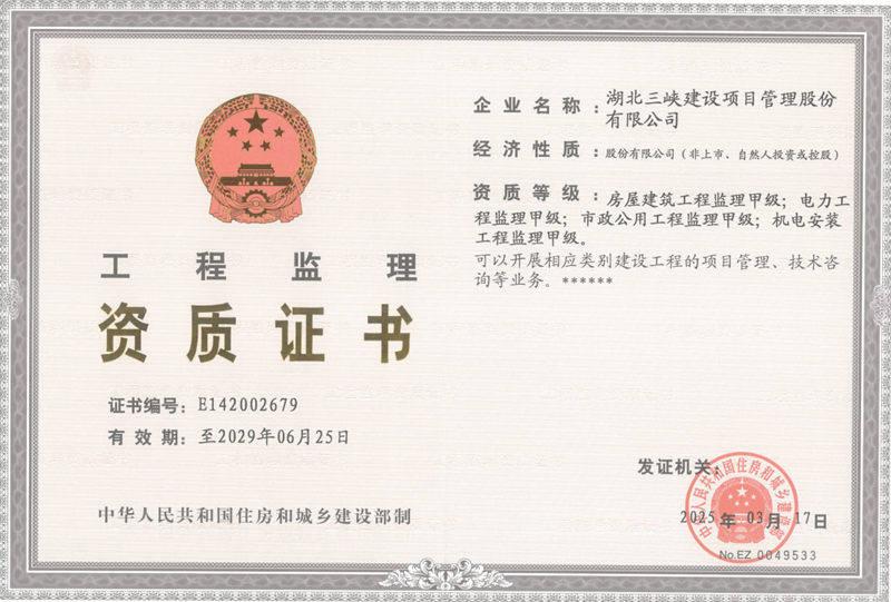 湖北三峽建設(shè)項目管理股份有限公司立足湖北宜昌,業(yè)務(wù)范圍遍及新疆、云南、福建、廣東、安徽等省市,為投資人提供了誠信、科學(xué)、規(guī)范的項目管理咨詢服務(wù)。公司注重以人為本,匯聚了專業(yè)、敬業(yè)、廉潔的人才隊伍,擁有全國注冊監(jiān)理工程師、一級造價師、一級建造師、咨詢工程師(投資)等注冊執(zhí)業(yè)人員120余人(其中高級工程師30余人);公司致力以標(biāo)準為基,形成了履責(zé)行為規(guī)范和風(fēng)險管理機制,質(zhì)量管理、環(huán)境管理、職業(yè)健康安全管理獲ISO9001、ISO14001、 ISO 45001管理體系認證,公司研發(fā)的信息管理系統(tǒng)獲國家版權(quán)局計算機軟件著作權(quán)證;公司追求以價值為魂,鑄就了全過程控制、全要素服務(wù)的工作作風(fēng),所承擔(dān)的項目獲國家級建設(shè)工程質(zhì)量安全獎9項、省級建設(shè)工程質(zhì)量安全獎300余項,市級建設(shè)工程質(zhì)量安全獎500余項,合同履約率100%。