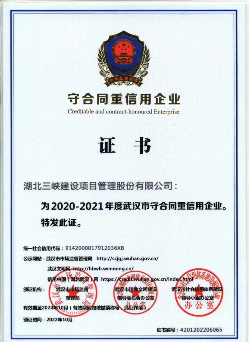 近四十年以來,三峽建設(shè)人恪守“科學(xué)、公正、誠(chéng)信、開拓”的經(jīng)營(yíng)宗旨,秉持“通過過程控制實(shí)現(xiàn)投資價(jià)值最優(yōu)化”的增值理念,踐行“讓業(yè)主滿意、為社會(huì)盡責(zé)、使自己安心”服務(wù)原則,著力打造“具有增值服務(wù)價(jià)值和社會(huì)公信力”的工程建設(shè)全過程管理咨詢企業(yè),努力為客戶提供更精準(zhǔn)的技術(shù)管理服務(wù),努力為員工創(chuàng)造更美好的人生平臺(tái),努力為社會(huì)回饋更有益的正能量,廣泛得到項(xiàng)目業(yè)主和建設(shè)行政管理部門的高度信任和支持。公司連續(xù)連續(xù)二十年獲湖北省先進(jìn)監(jiān)理企業(yè)及湖北省守合同重信用企業(yè),被中國(guó)建設(shè)監(jiān)理協(xié)會(huì)、中國(guó)建設(shè)工程造價(jià)管理協(xié)會(huì)評(píng)價(jià)為“AAA”信用等級(jí),被湖北省招投標(biāo)協(xié)會(huì)評(píng)價(jià)為“AAA”信用等級(jí),被湖北省認(rèn)定為高新技術(shù)企業(yè),公司黨支部被中共宜昌市西陵區(qū)委授予優(yōu)秀基層黨組織榮譽(yù)稱號(hào)。